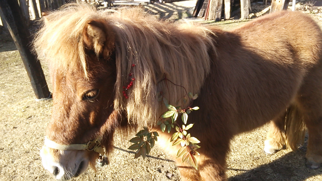お昼から外に繋いでおいたハナちゃんを、夕方に迎えに行くと・・・![]()