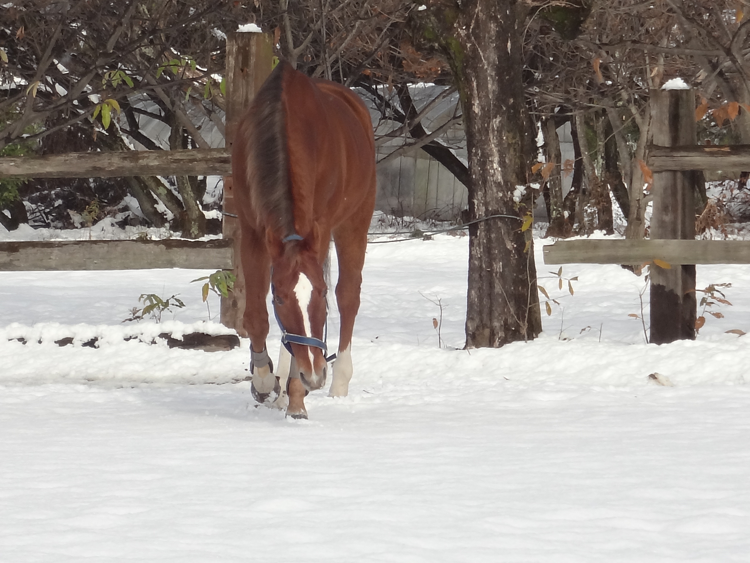 真っ白な雪にピッカピカの栗毛body![]()